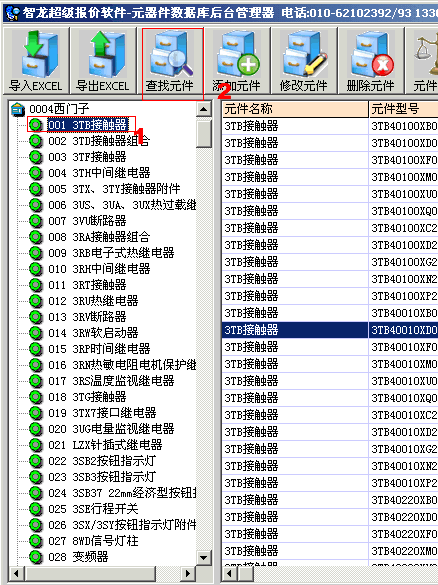查找元件 两种方式可以在后台管理器查找所需的元件 1 点某个厂家的某个类别的元件,系统自动显示出对应类别的元件,此类中的前2000条被显示出来 2 点查找按钮,给定条件,查找指定的元件