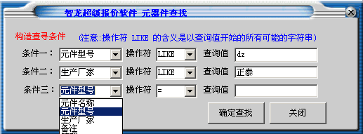 1 点某个厂家的某个类别的元件,系统自动显示出对应类别的元件,此类中的前2000条被显示出来 2 点查找按钮,给定条件,查找指定的元件